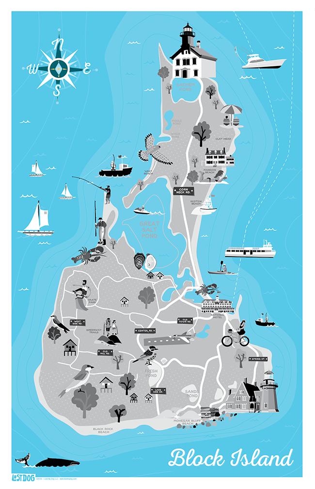 Block Island Illustrated Map – LOST DOG Art & Frame