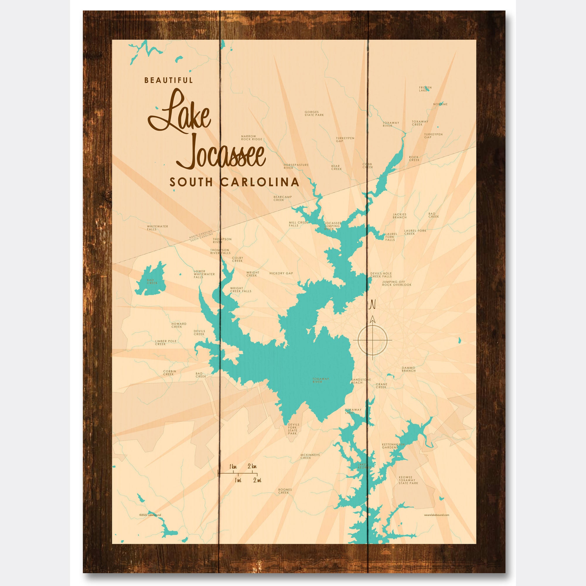 Lake Jocassee South Carolina, Rustic Wood Sign Map Art – Lakebound®